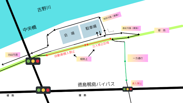 会場周辺は規制区域となります。